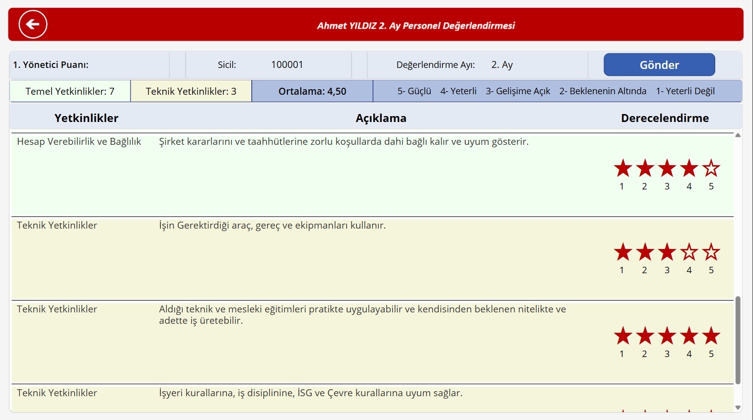 • Hesaplamalar otomatik yapılmaktadır. Belirli bir puanın altında kalan personeller ile yollar ayrılmaktadır.