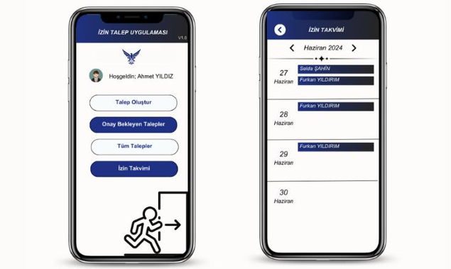 En çok talep edilen uygulamalardan biri de izin talep sistemidir. Kullanıcılar mobil veya web üzerinden izin talebinde bulunabilir. Talep üst yöneticiye ve daha sonra var ise bir üst yöneticiye onaya çıkabilir.
