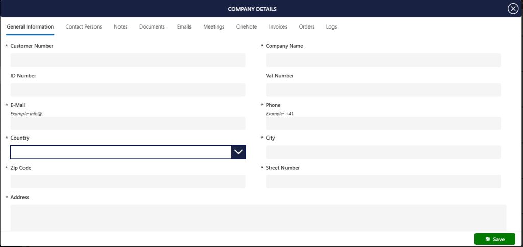 Şirketlerin genel bilgilerini, ilgili personellerini sistemimizde tutabiliriz. Notlar ve dokümanlar ekleyebiliriz. Outlook üzerinden gelen giden tüm mailleri sistemde otomatik olarak arşivleyebiliriz.